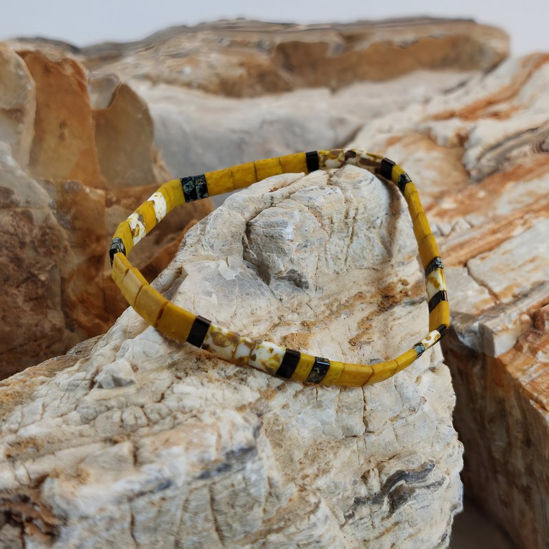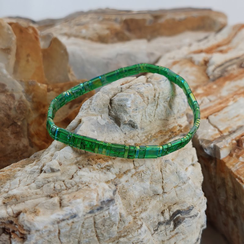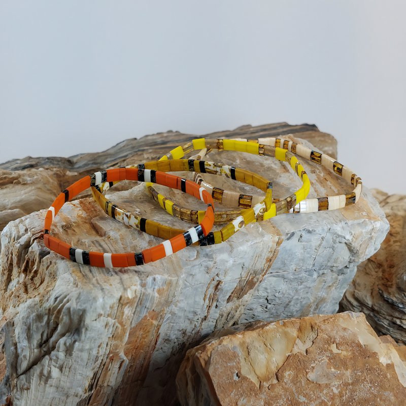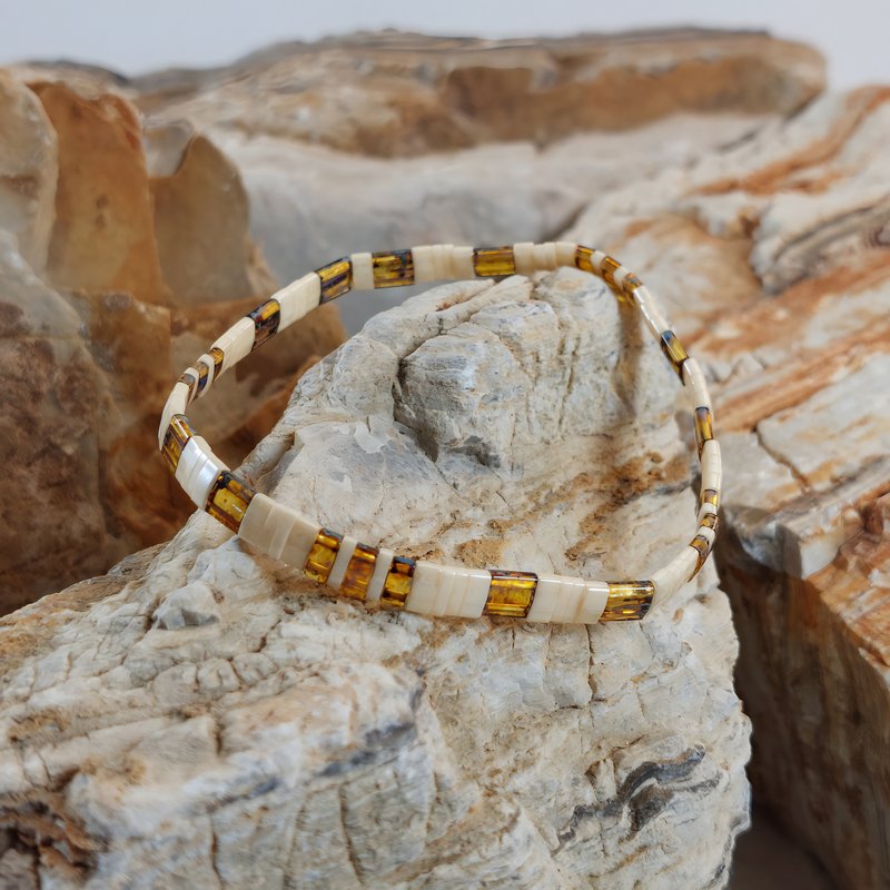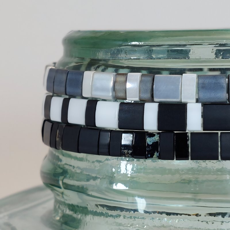 Chaque bracelet est entièrement façonné à la main en France, à partir de perles plates Miyuki en verre. Grâce au fil élastique, il s’enfile en un geste et reste agréable toute la journée, idéal si vos activités s’enchaînent. Porté seul, il signe un accent de caractère; en accumulation, il compose un style polyvalent et personnel.