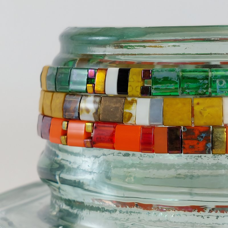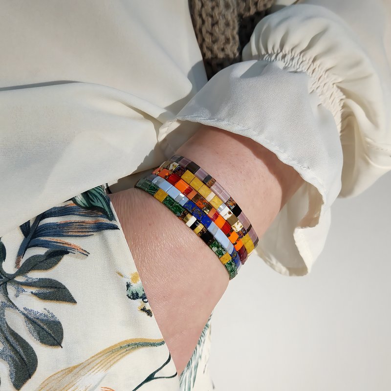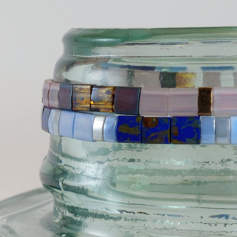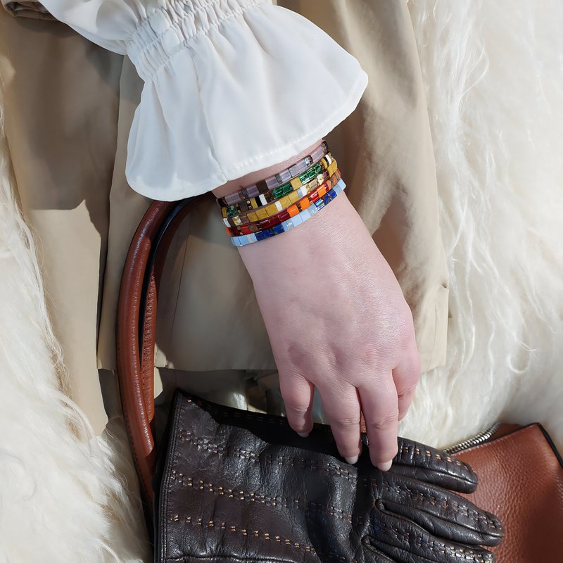 Pensés pour votre quotidien, ces bracelets sur fil élastique s’enfilent en un geste et restent agréables des réunions au dîner. Fabriqués à la main en France avec des perles plates Miyuki en verre, ils se combinent facilement à votre montre ou à d’autres bijoux pour un mix & match polyvalent et personnel.