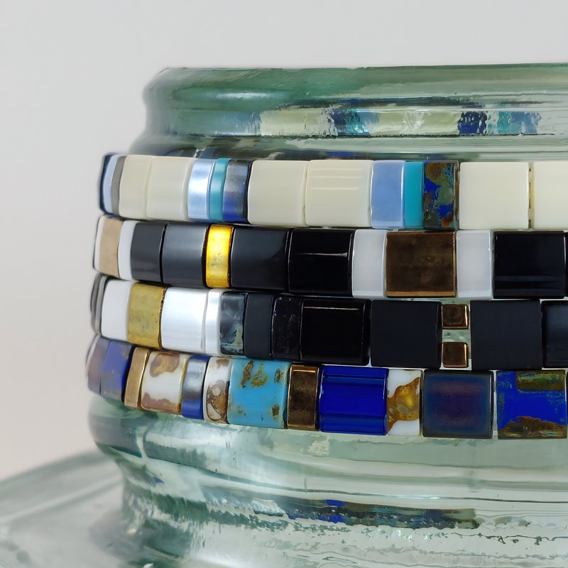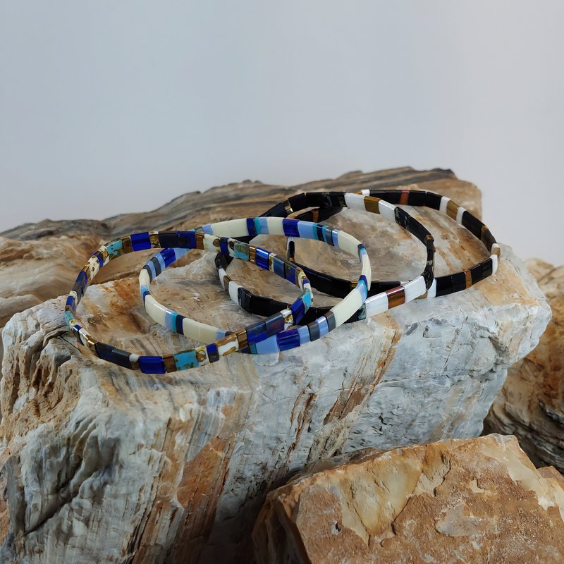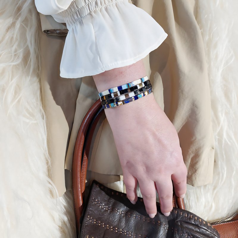 L’ensemble INTEMPOREL de bracelets de perles RE•VE Originel™ est une collection de bracelets fabriqués à la main en France avec des perles plates authentiques Miyuki du Japon. Les bracelets sont conçus pour être élégants, confortables et pratiques, grâce à leur fil élastique qui permet de les enfiler et de les retirer facilement.
