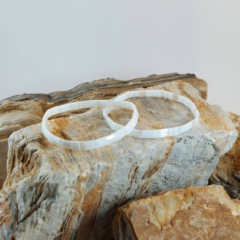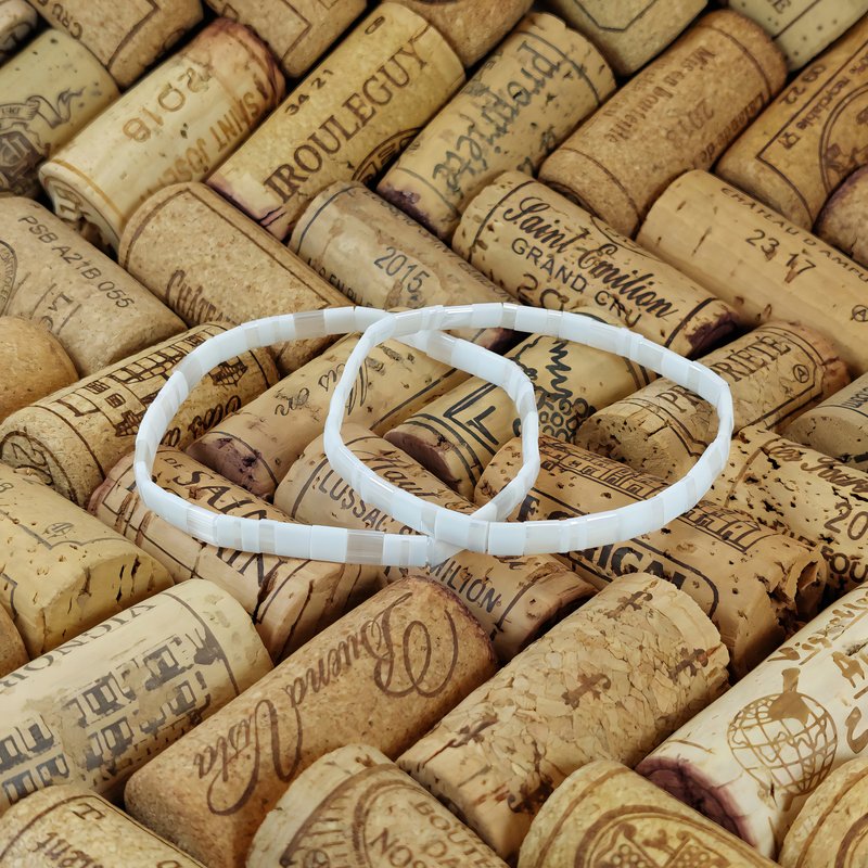 Nos bracelets RE•VE Originel™, nées de l’alliance subtile des perles plates du Japon et d’un fil élastique souple haute résistance, épousent vos poignets avec une discrétion qui fait toute la différence.